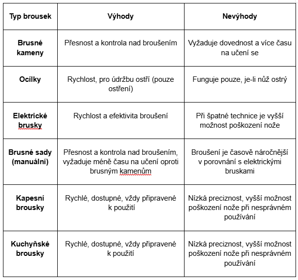 Broušení nožů lze realizovat různými způsoby – od tradičních po moderní. Výběr správného nástroje závisí na typu nože, četnosti používání i preferencí uživatele. Na trhu dnes existují manuální i elektrická řešení, od jednoduchých ocílek po profesionální brusné sady s nastavitelným úhlem.