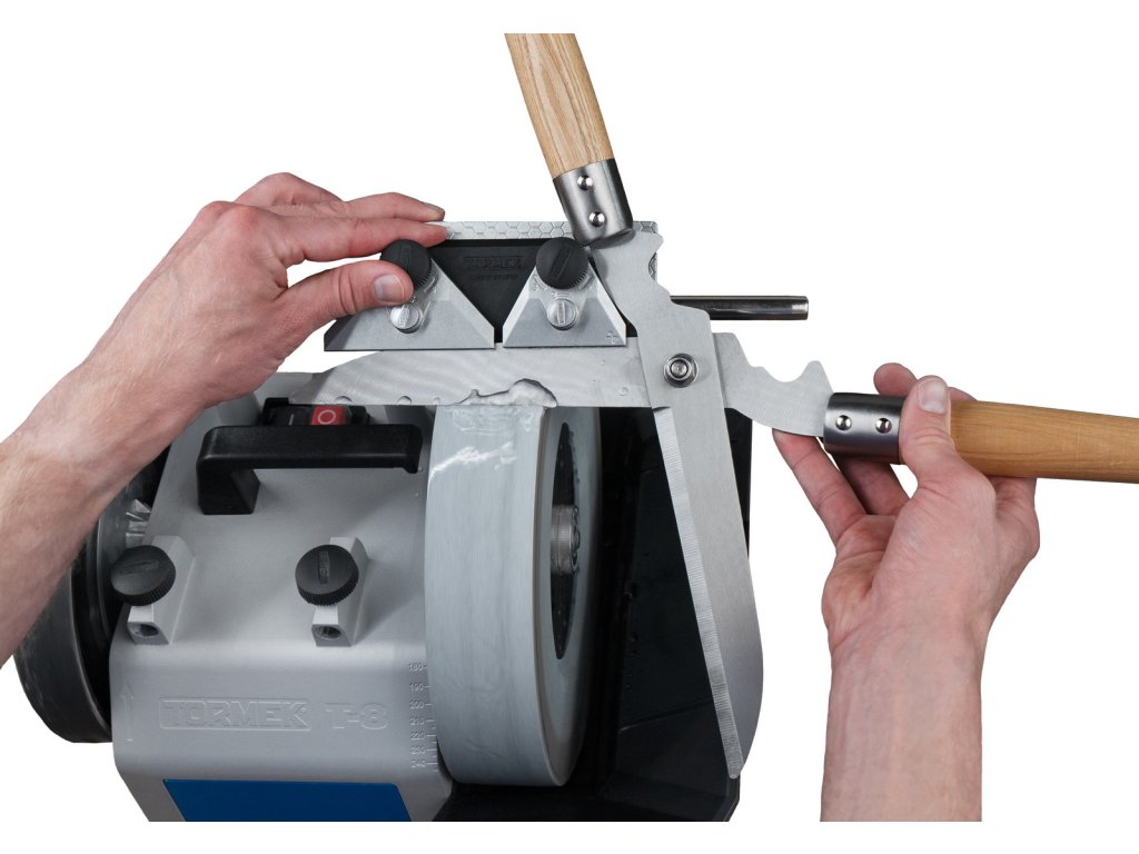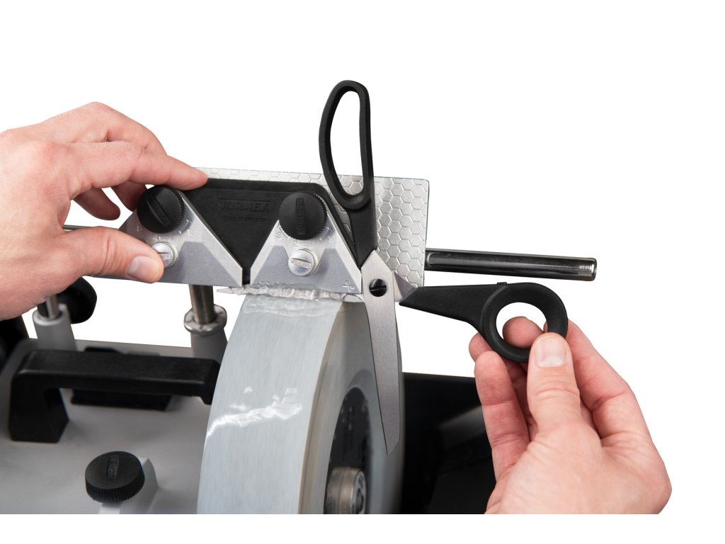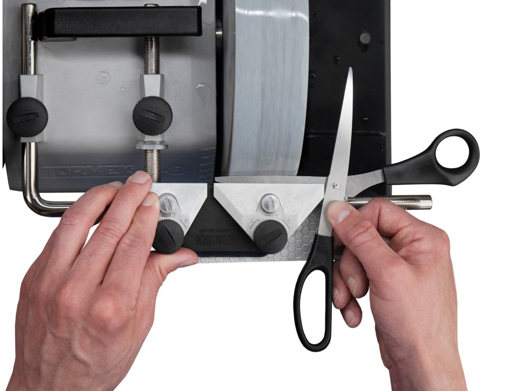Při použití na brusku Tormek T-2 Pro lze brousit nůžky s délkou čepele do 120 mm (měřeno od čepu po hrot). Delší nůžky lze brousit jen po jejich rozebrání, přičemž se každá čepel brousí samostatně.