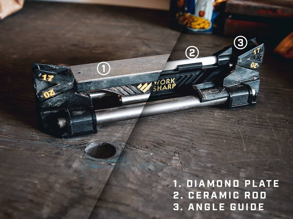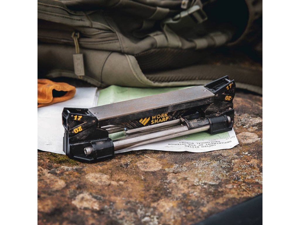 Kombinovaný brusný kámen Work Sharp Guided Sharpening System je kompletní stolní systém ostření a honování od Work Sharp®. GSS byl vytvořen s ohledem na začátečníky i zkušené brusiče a lze jej použít k broušení každého nože, který vlastníte. Inovativní systém Pivot-Response® během ostření sleduje křivku čepele a vytváří rovnoměrné ostří po celé délce čepele. Tato dovednost je v nástroji zabudována, nepotřebuje žádné přípravky, žádné svorky.