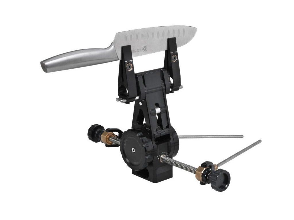 Set přídavných svorek lze nastavit posunutím svorek na tyčkách pro různou vzdálenost. Je také možno obě svorky nasadit na jednu tyčku vedle sebe a tím zajistit velmi pevné upnutí čepelí malých nožů.