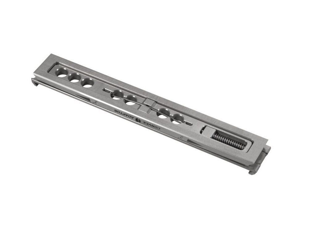 Konvex adaptér je z bloku duralové slitiny Ergal 7075 T651 s povrchovou úpravou z přírodního eloxu.