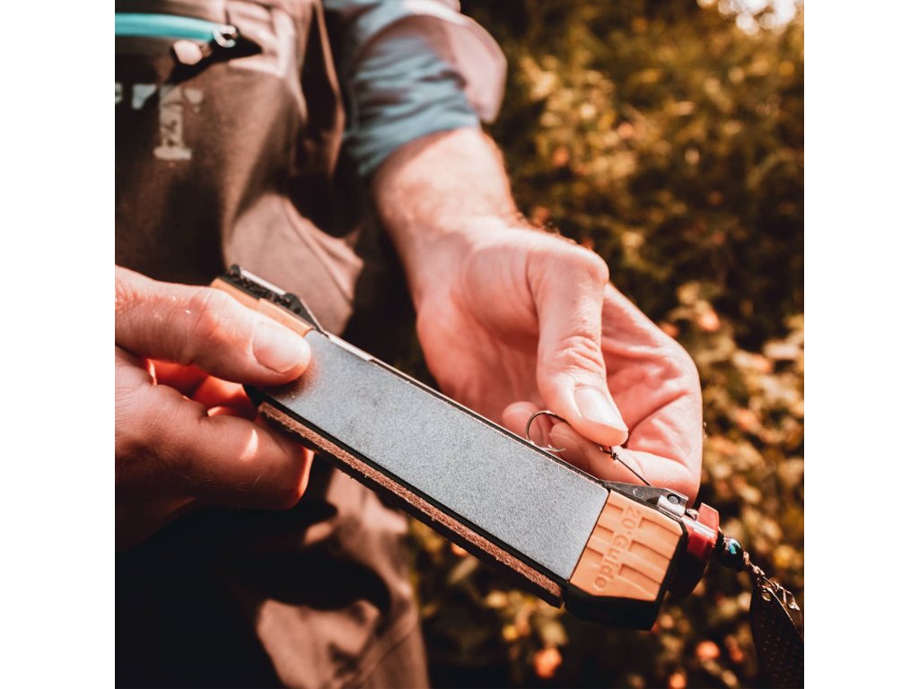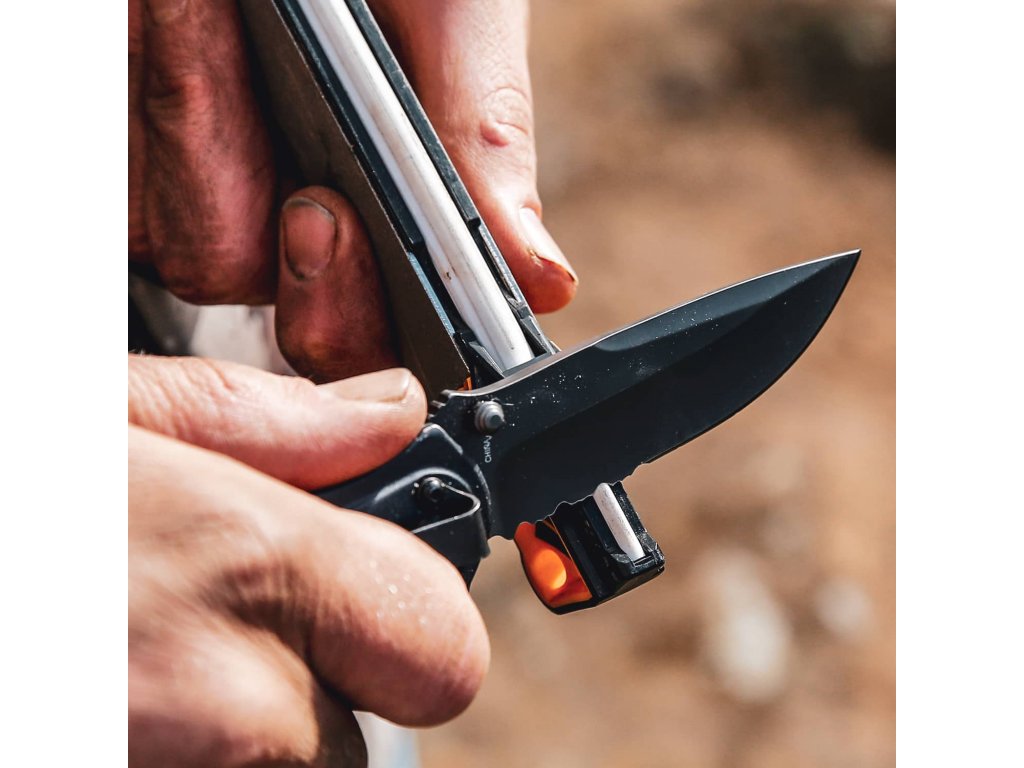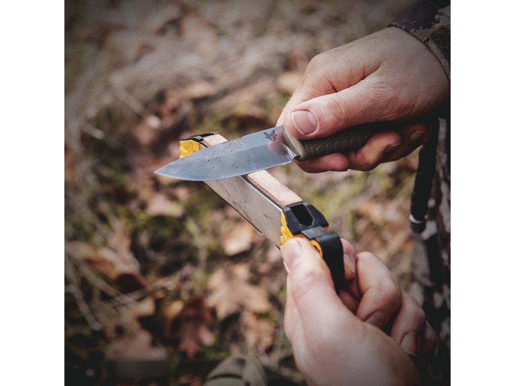 Kapesní brousek na nože Work Sharp Guided Field Sharpener je komplexní malý brousek na nože určená pro použití v terénu. Brousek obsahuje dva diamantové brusné pláty zrnitosti 220 a 600, dvě keramické brusné tyčky - větší tyčka pro jemné broušení nožů s drážkou pro broušení rybářských háčků a malá tyčka pro broušení zubatého ostří. Zároveň obsahuje i malý pás kůže na obtažení ostří po broušení. Diamantová plata jsou k brusce přichycena silnými magnety. Díky kompaktnímu provedení a lehké váze si brusku snadno sbalíte do batohu a budete moci brousit kdykoli a kdekoli – rychle a snadno.