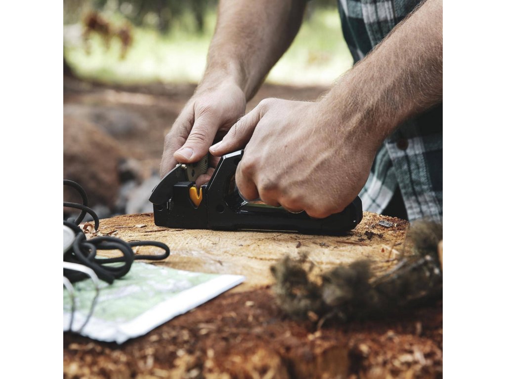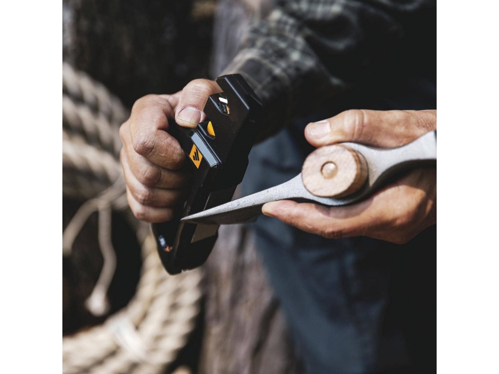 Ruční bruska na nože a nástroje Work Sharp Pivot Pro Knife Sharpener rychle a snadno obnovuje ostrost nožů a nástrojů jako nůžky nebo sekery. Brusné čelisti z karbidu wolframu Convex-Carbide® rychle obnoví ostří čepele zatímco keramické tyčinky s jemnou zrnitostí vyhladí ostří. Bruska obsahuje dva další specializované ostřící moduly, jeden pro jemné zahradní nástroje a druhý pro nůžky. Diamantová deska střední zrnitosti zvládne ostření širokého spektra čepelí včetně seker. Úhel broušení: 25°.