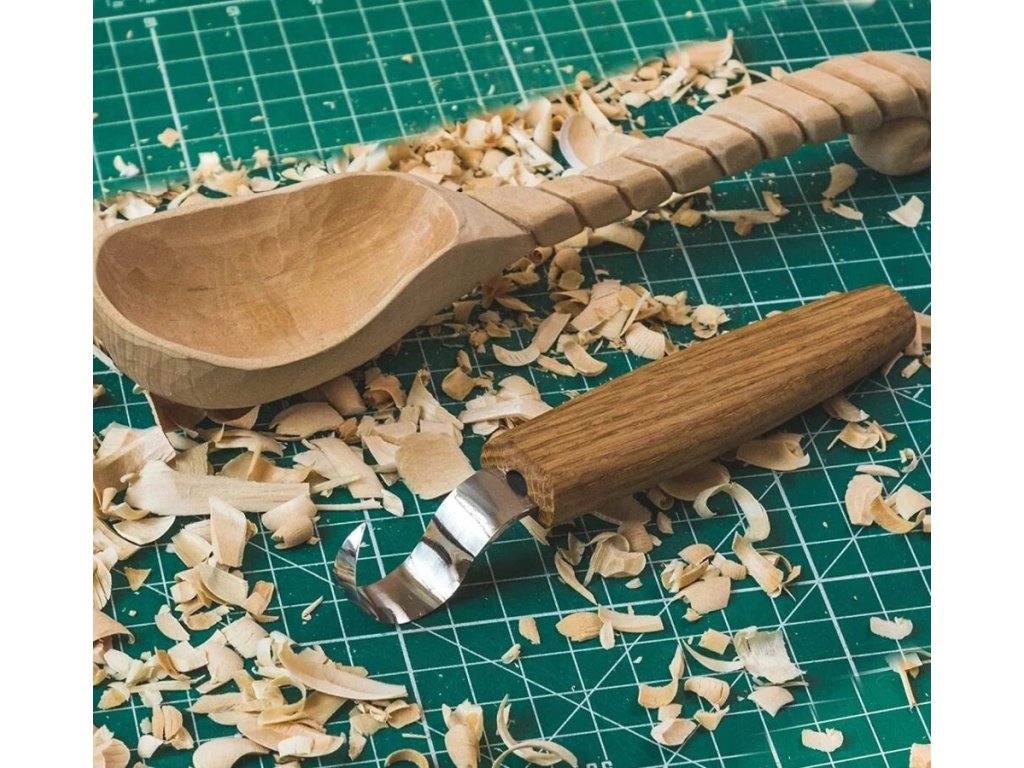 Řezbářský lžičkový nůž s jednostranným ostřím pro leváky. Speciálně přizpůsoben na vyřezávání lžic, misek, kuksy a jiných kousků kde potřebujete do dřeva vyhloubit otvor. Čepel z uhlíkové oceli 65G tvrdosti 57 - 59 HRC. Čepel z uhlíkové oceli 65G dobře drží ostří a snadno se brousí, avšak je náchylnější ke korozi (nůž třeba po použití důkladně vyčistit a vysušit, rovněž je vhodné čepel občas přetřít olejem). Rukojeť nože z dubového dřeva, napuštěná lněným olejem. Model SK1 má vnitřní rádius (průměr) přibližně 2,5 cm.