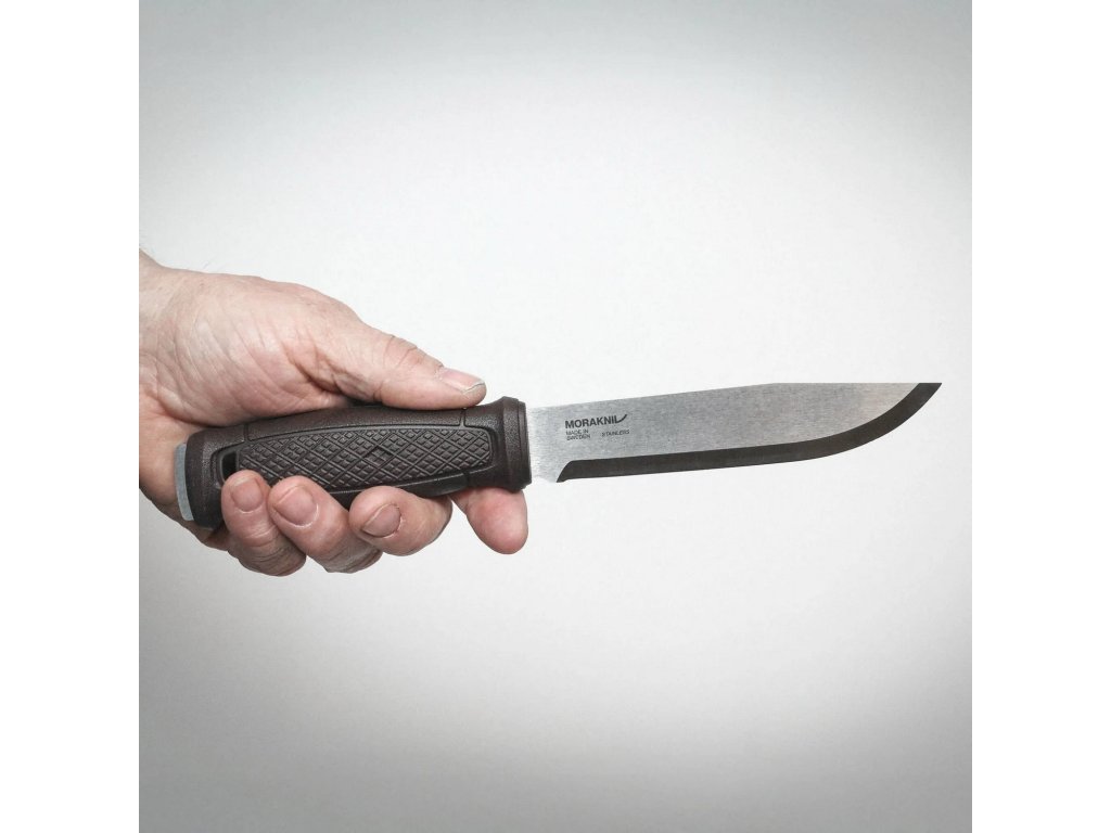 Robustní nůž do lesa a přírody Morakniv Garberg Grand (S) má čepel z nerezové oceli Sandvik 14C28 délky 14,2 cm a povrchovou úpravou satin. Ergonomická polymerová rukojeť tmavě hnědé barvy s protiskluzovým vzorem je doplněna o chránič prstů.