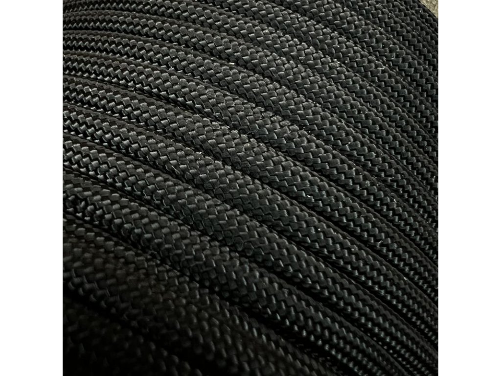 Padáková šňůra - paracord nosnosti 550 lbs (250 kg). Šňůra má jádro tvořené 7 vysoce kvalitními nylonovými vlákny a oplet z 32 pramenů.