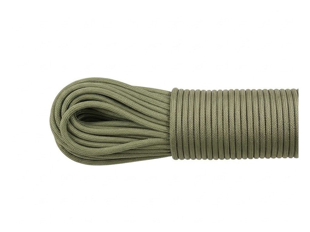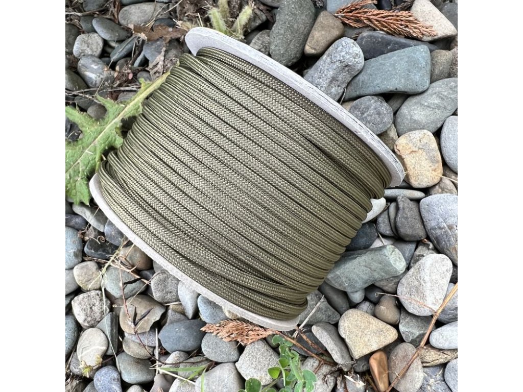 Padáková šňůra - paracord nosnosti 550 lbs (250 kg). Šňůra má jádro tvořené 7 vysoce kvalitními nylonovými vlákny a oplet z 32 pramenů.