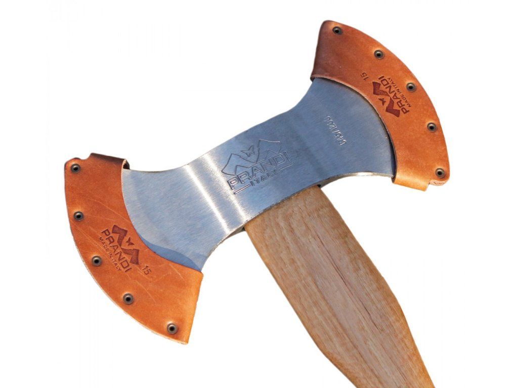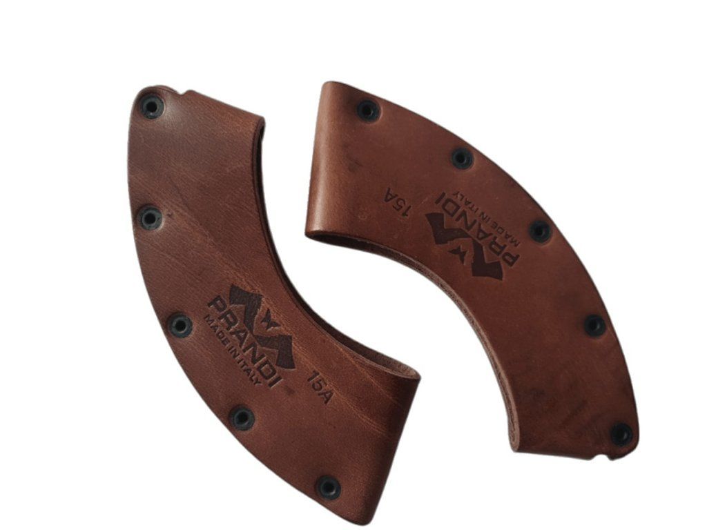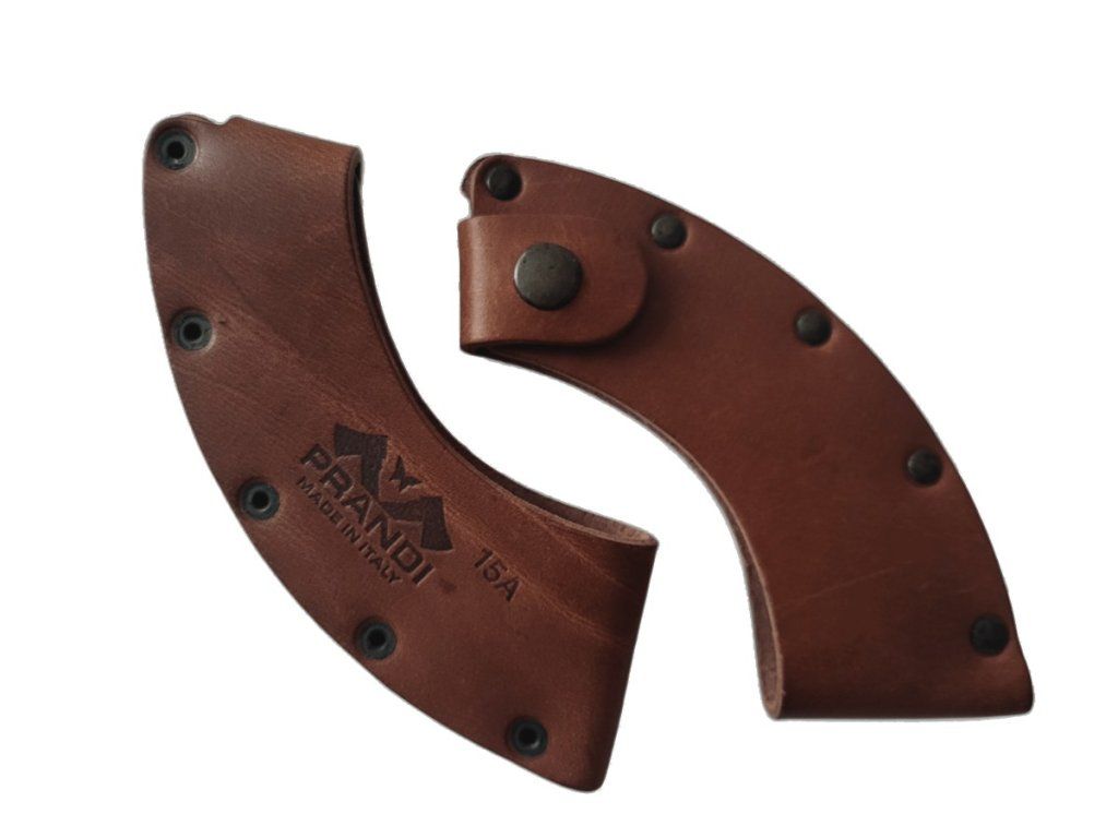 Kožené chrániče ostří pro sportovní vrhací sekeru Prandi Double Bit 3T.054.12.CH. Vhodné pro modely 3.054. Zapínání na druk. Vyrobeno z pravé kůže. Balení obsahuje dva kusy na obě ostří sekery.