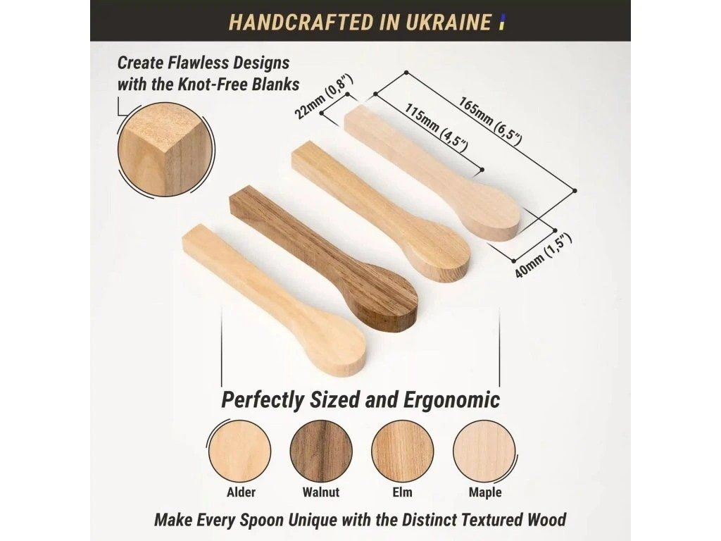 Hledáte něco, co rozproudí vaši kreativitu a zároveň se stane užitečným nástrojem ve vašich rukou? Dřevo na vyřezávání ve tvaru lžičky čeká pouze na toho správného umělce, který se mu pověnuje, vyřízne z něj lžíci a vezme ji ochutnat všechny možné dobroty, které ve vaší kuchyni budete připravovat. Sada BeaverCraft BB2 obsahuje čtyři kusy dřeva pro výrobu lžičky z těchto druhů dřeva: břest, ořech, javor, olše. Dřevo je vysušené. Všechny kusy mají stejné rozměry.
