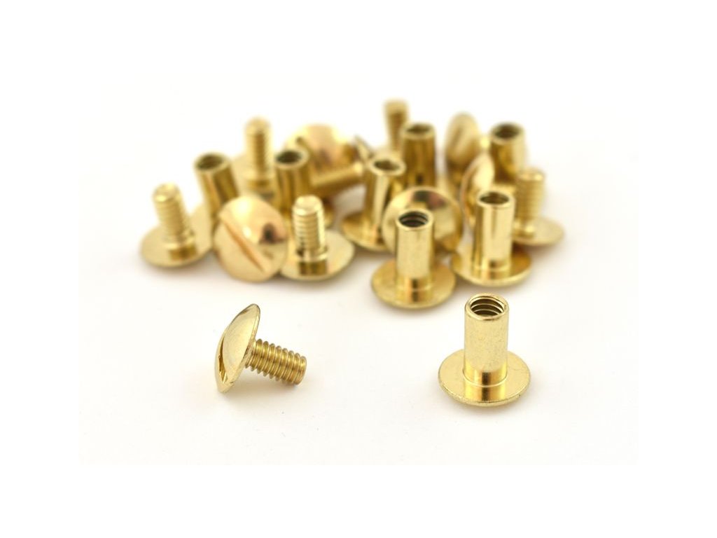 Šrouby Chicago, které jsou známé také pod názvy knižní šrouby či sedlářské nýty, mají dutý dřík s vnitřním závitem (matice) a klasický šroub s plochou hlavou. Po zašroubování vypadají z obou stran jako ploché disky. Využijete je jako spojovací materiál při práci s kůží, například při výrobě koženého pouzdra na nůž.