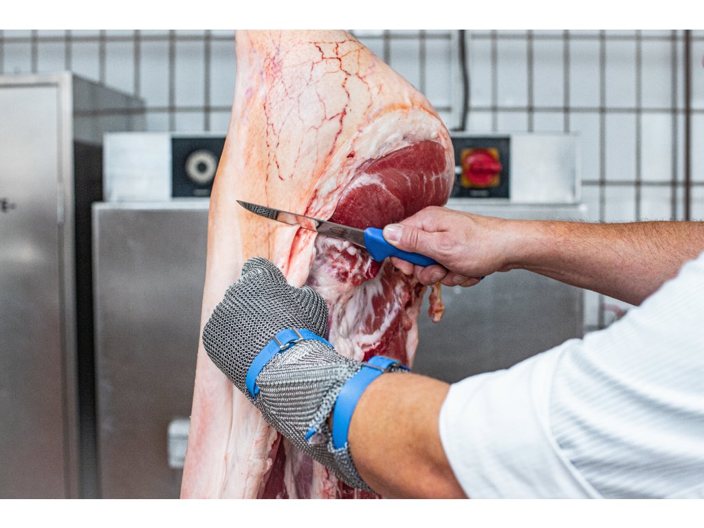 Profesionální řeznický nůž F. Dick ErgoGrip 8236815 s úzkou čepelí délky 15 cm z nerezové oceli X55CrMo14 s tvrdostí 56 HRC slouží k vykosťování a zpracování masa. Vyznačuje se ergonomickou rukojetí z modrého plastu pro pohodlný a bezpečný úchop i v mokrém prostředí. Mezi čepelí a rukojetí se nenacházejí žádné spáry, ve kterých by se mohly zachytit tekutiny. Rukojeť neabsorbuje mastnotu ani nečistoty.