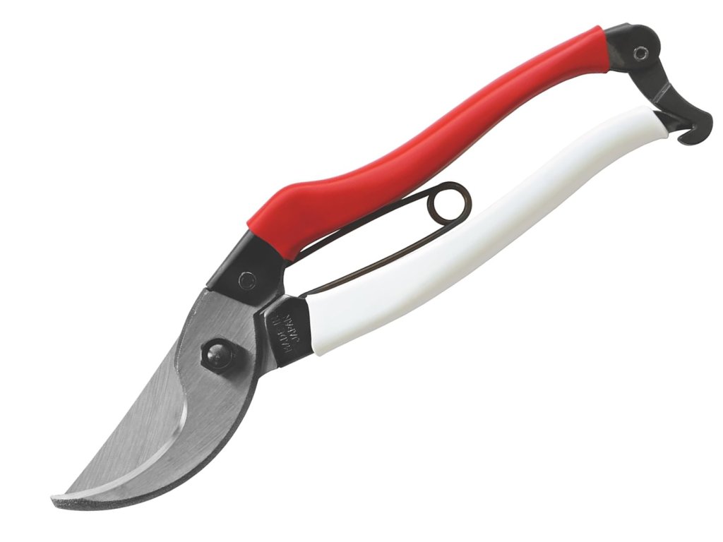 Pružina ve tvaru V zajišťuje rovnoměrně rozloženou zátěž po celé délce, což zaručuje bezpečné a plynulé zavírání nůžek. Nůžky mají jednoduchý uzamykací systém ve tvaru háčku na konci rukojeti, který lze obsloužit pomocí jedné ruky.